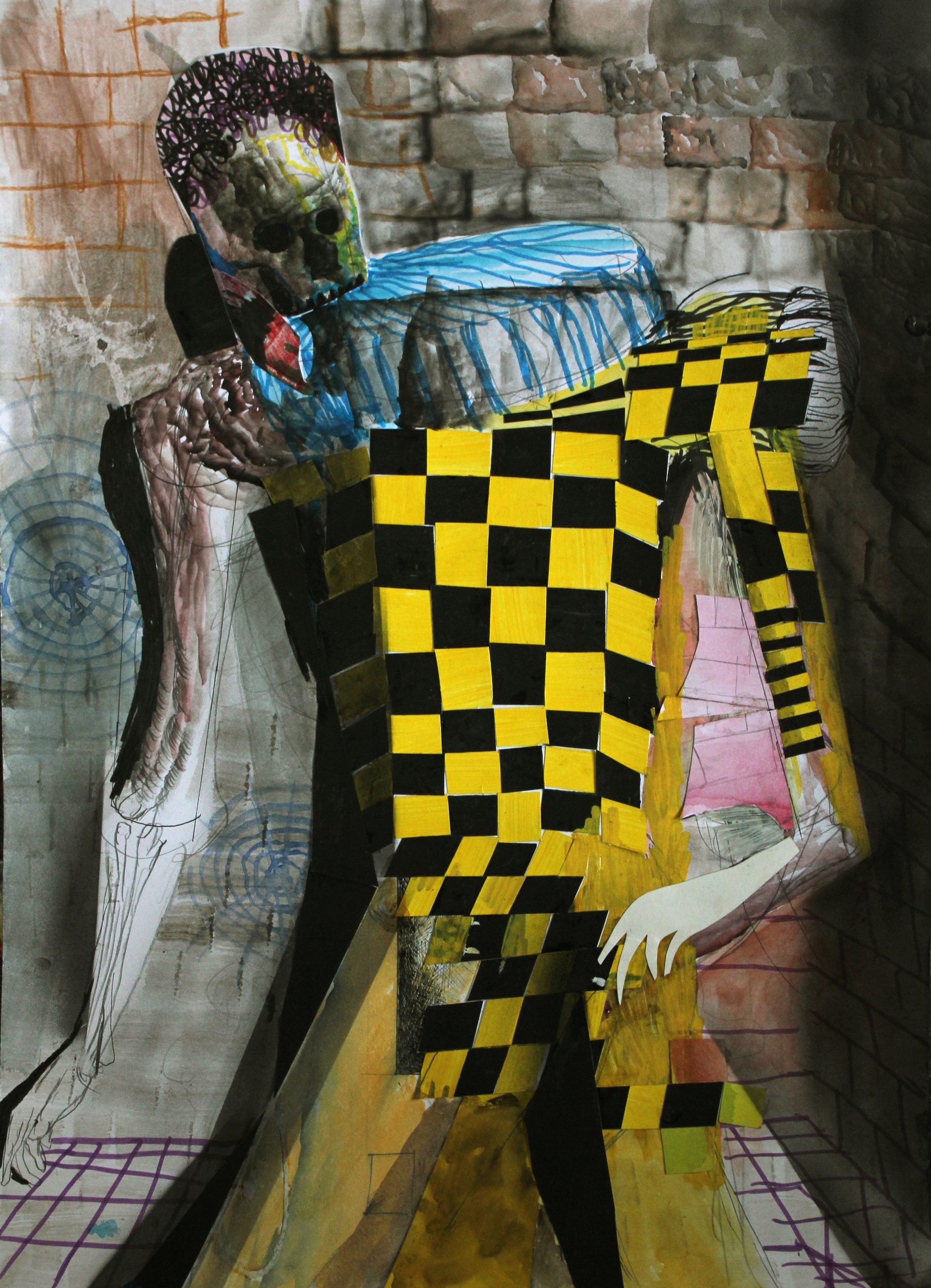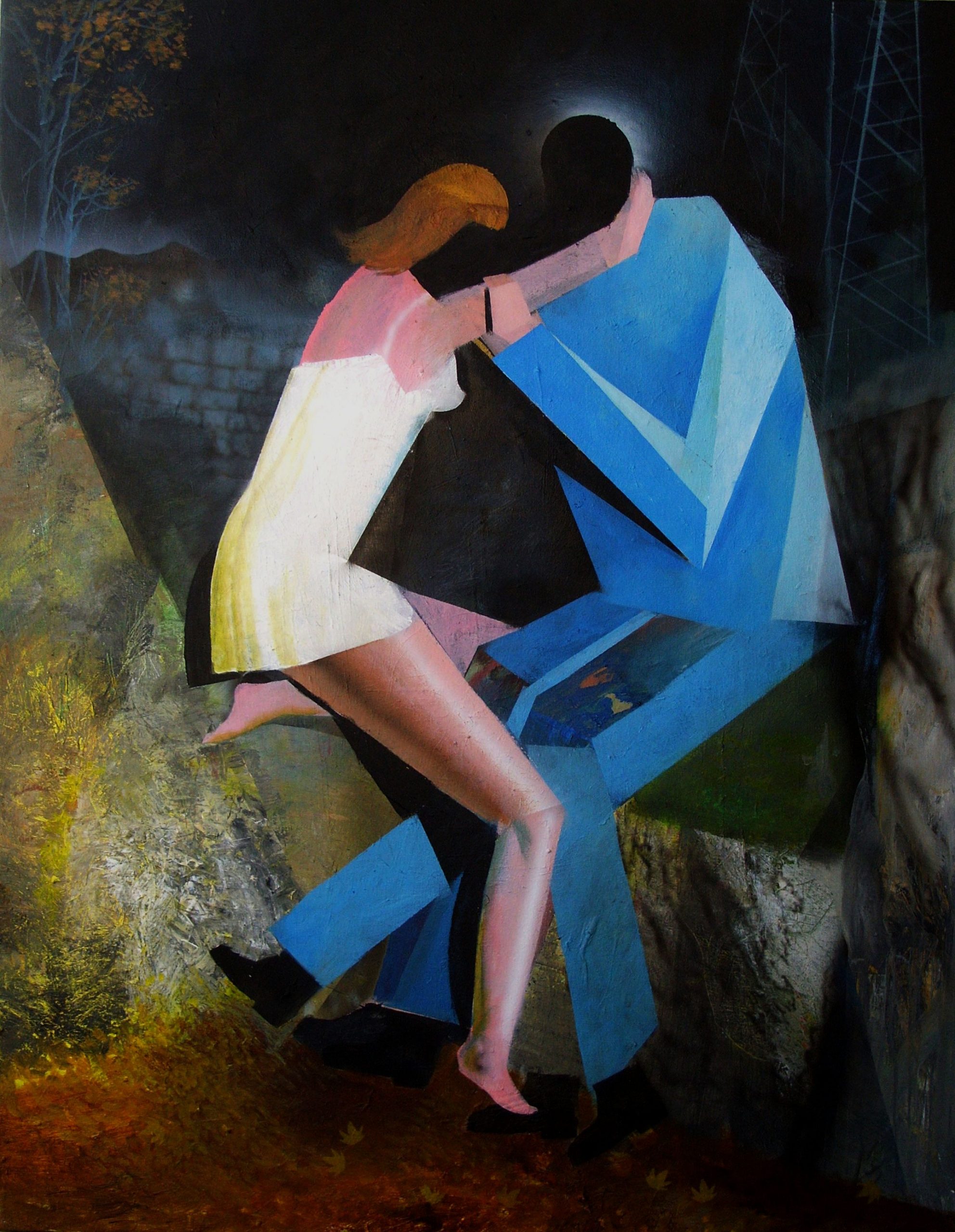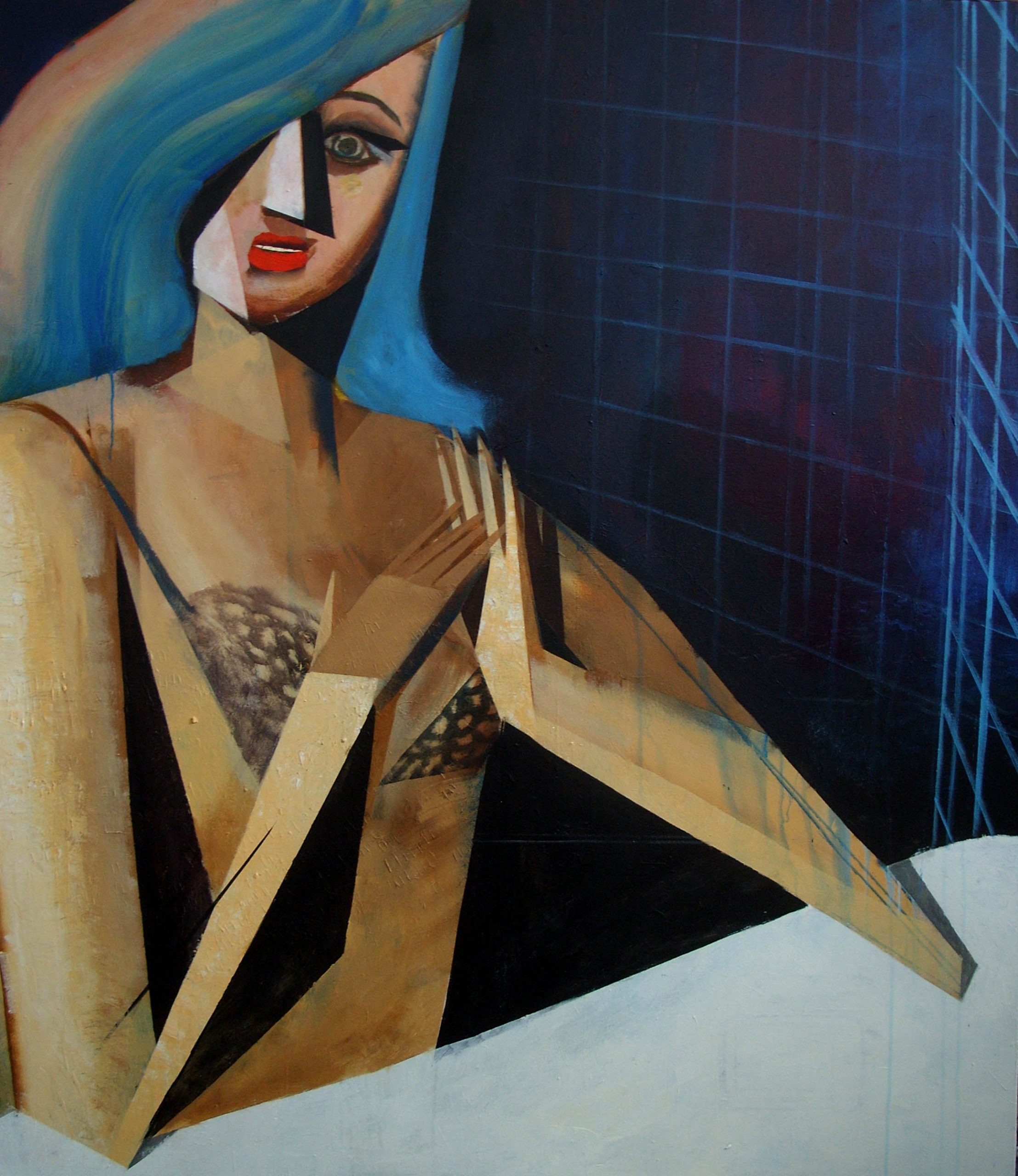 The upper Painting "Hollow geometries" ,- is a standalone work, but it is also a good example how the exchange between both analogue and digital media take place. The lower image is a Filmstill out of "Might of young Engines II", Its dwellers and different camera angle aside, it is constructed very much in regard to each other.